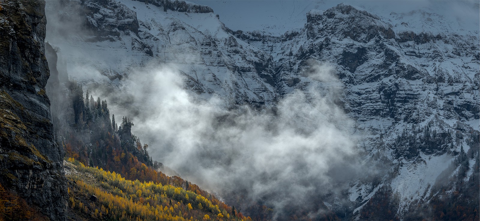 Cirque du Fer à Chaval en automne, Sixt-Fer-àCheval, Haute-Savoie, France.