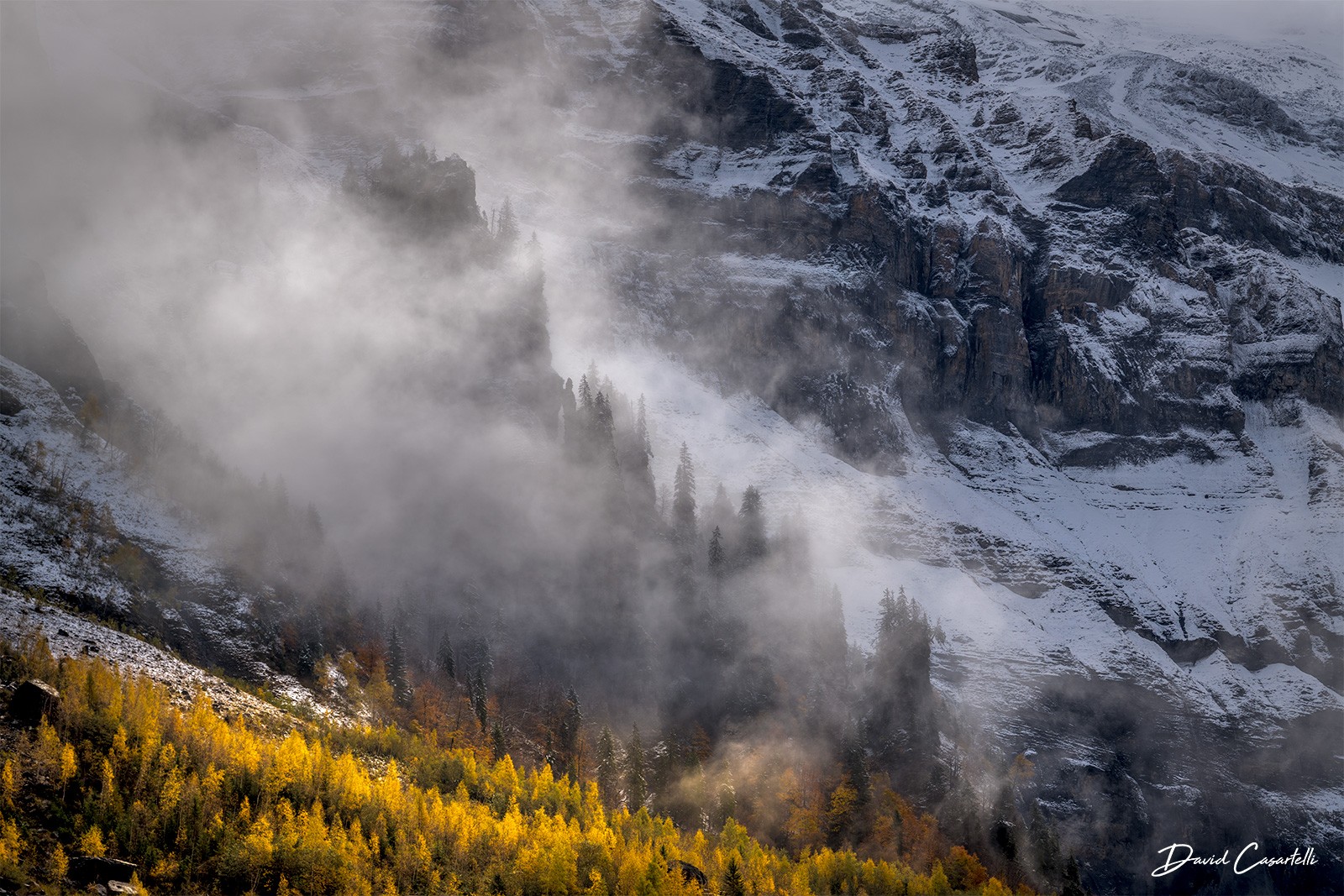 L’automne s’attarde, paré de son or fragile, tandis que l’hiver s’avance, souffle froid sur les hauteurs. Dans un murmure de brume, les saisons se frôlent et se mêlent, comme deux âmes qui hésitent à se quitter.